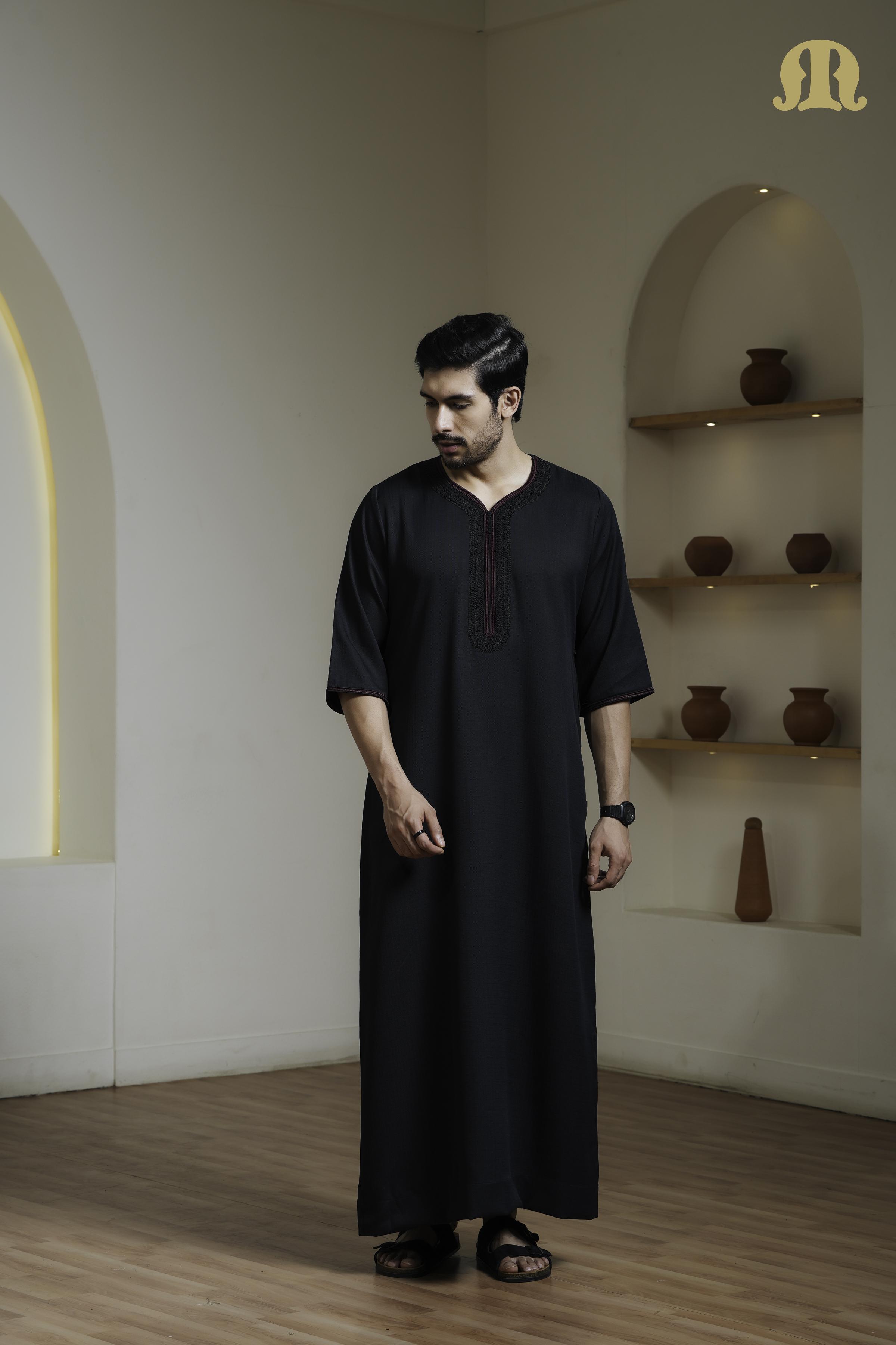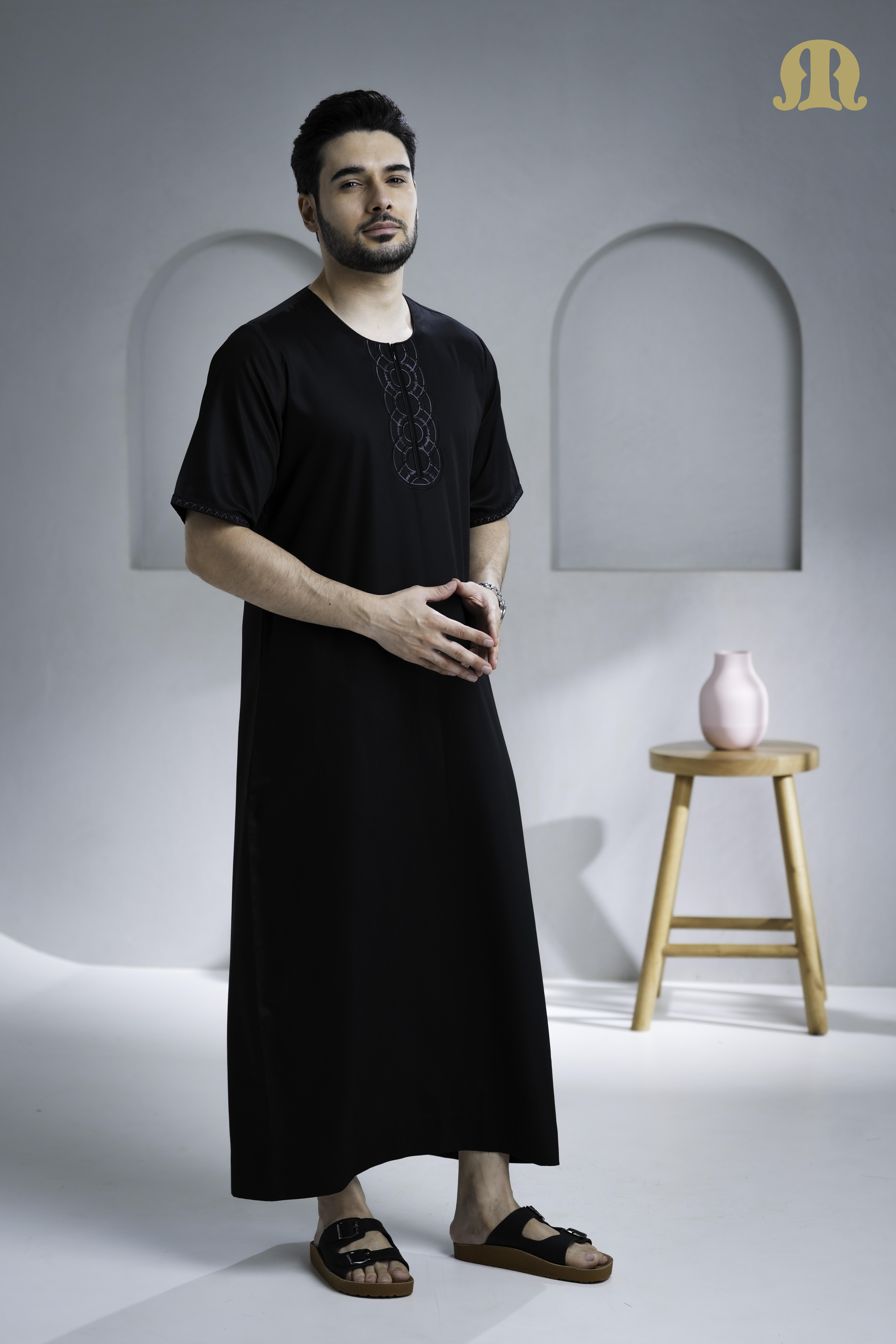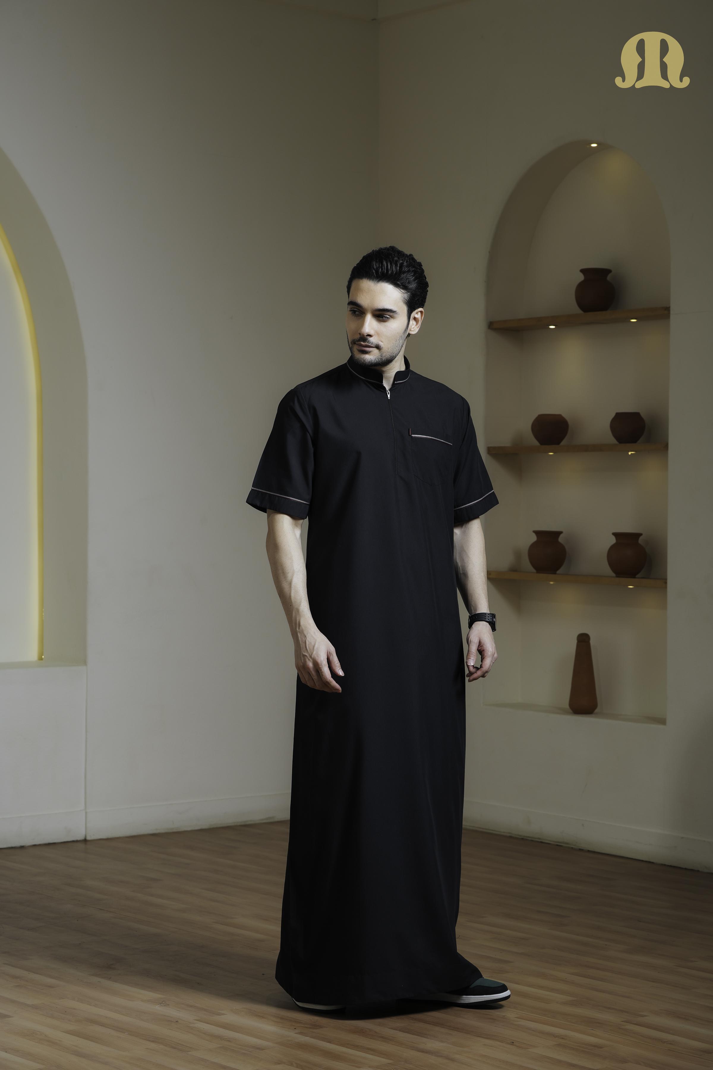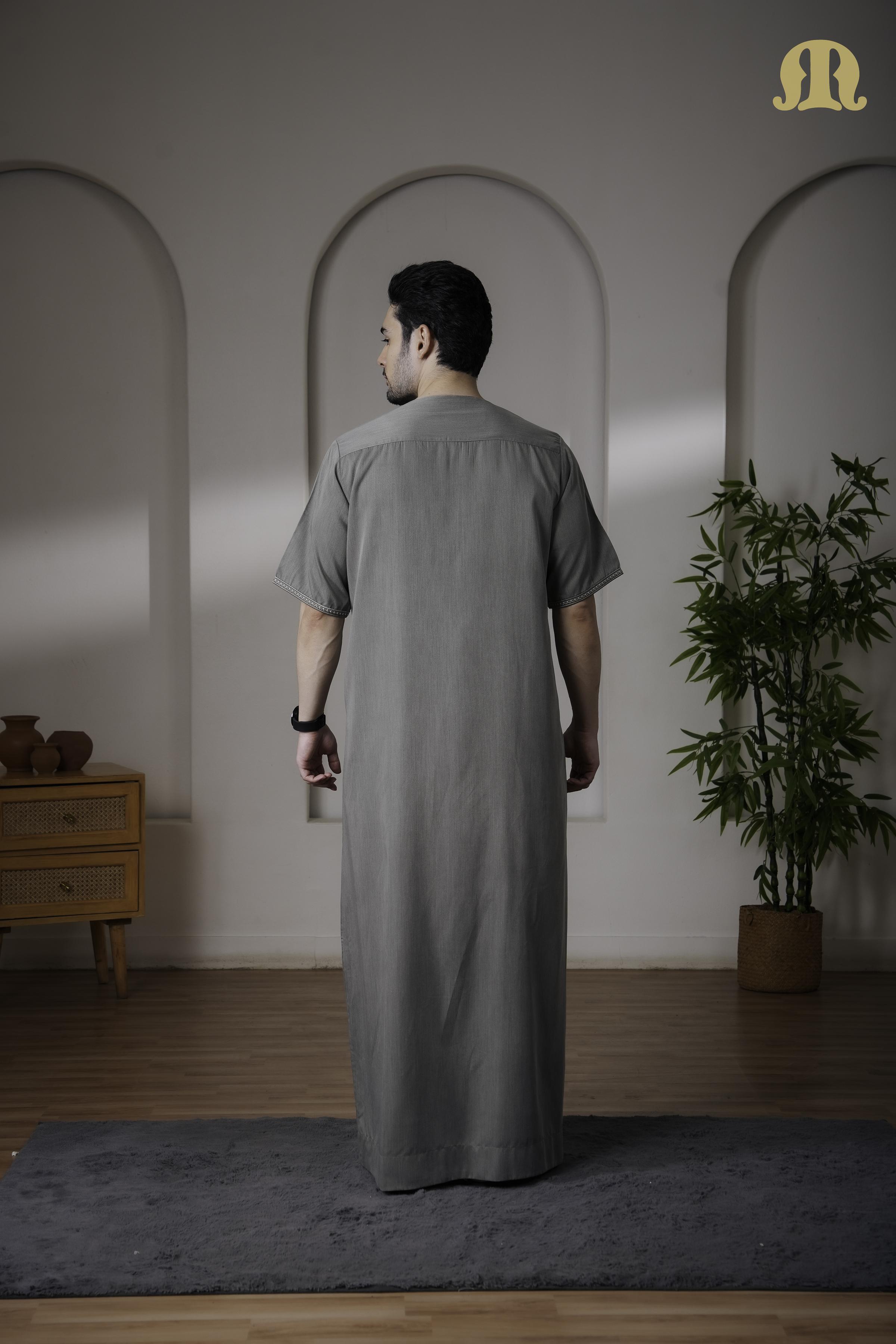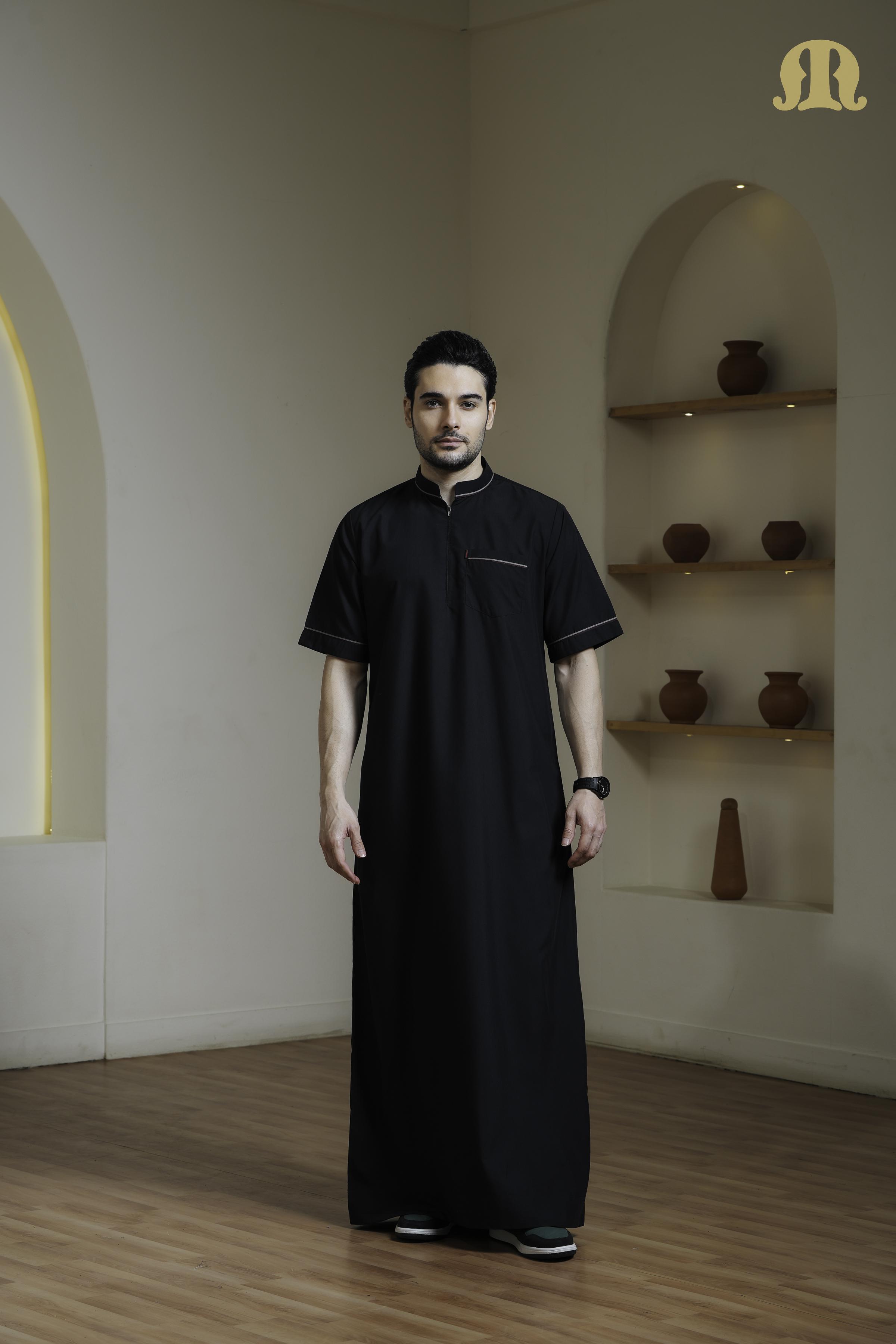 Designed for comfort with refined detailing, this Beige Andak Half Sleeve Thobe offers a perfect balance of practicality and traditional elegance. Its clean, streamlined silhouette ensures ease of movement, making it ideal for everyday wear in all climates. Crafted from premium Poly Viscose fabric, the thobe combines the breathability of cotton with the durability and wrinkle resistance of polyester. The result is a lightweight, easy-to-maintain garment that stays comfortable and presentable throughout the day. The design is elevated by an embroidered, adding a touch of sophistication, while embroidered sleeves enhance the overall look with subtle craftsmanship. The half sleeves provide a relaxed, contemporary feel without compromising modesty or style.