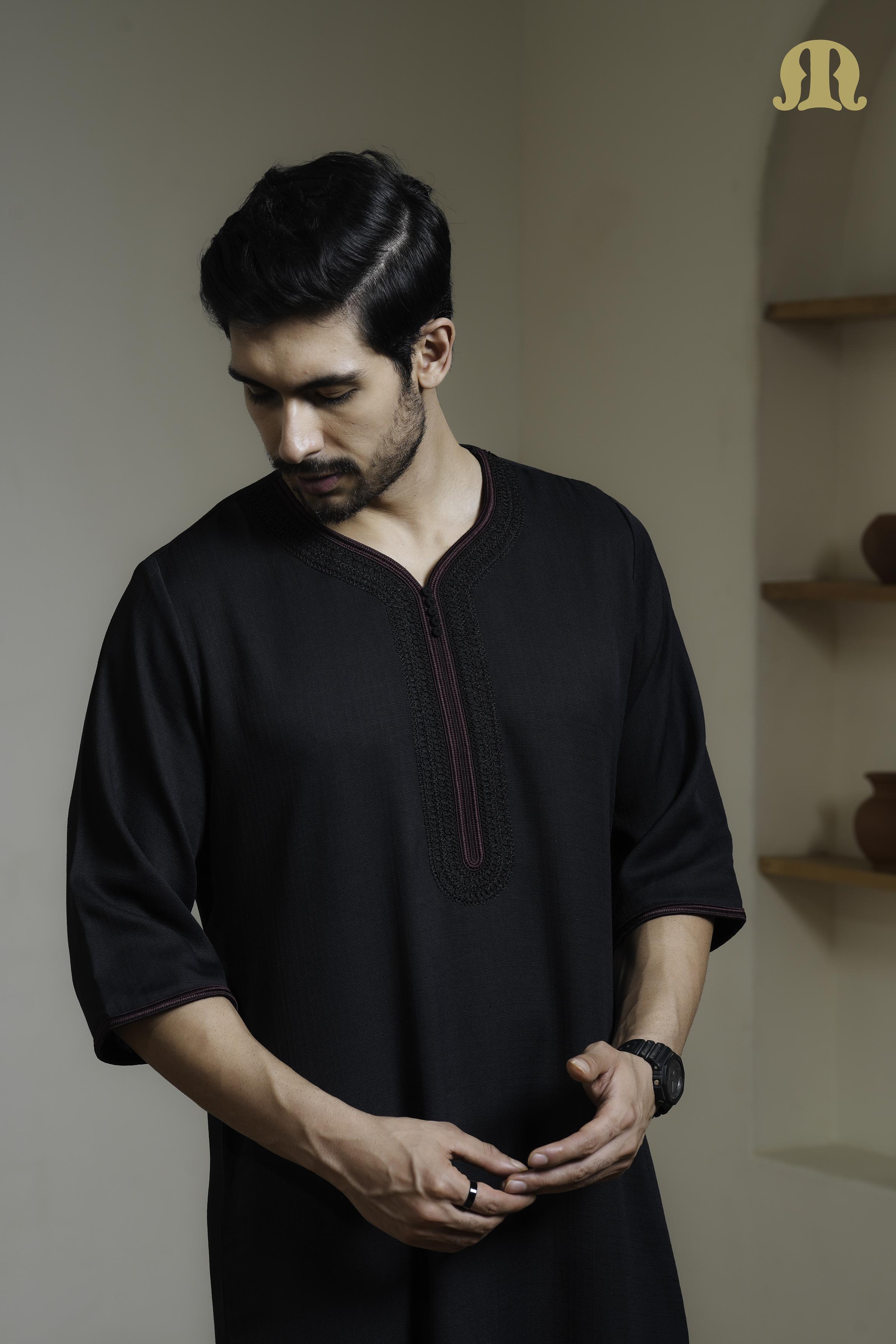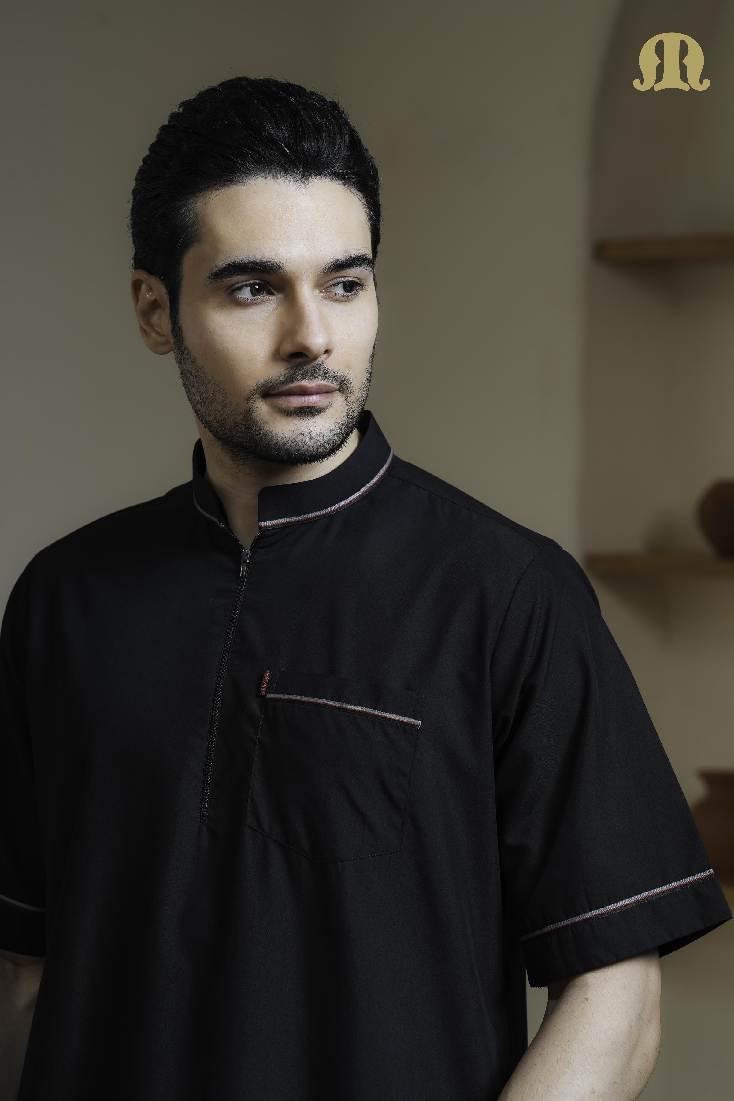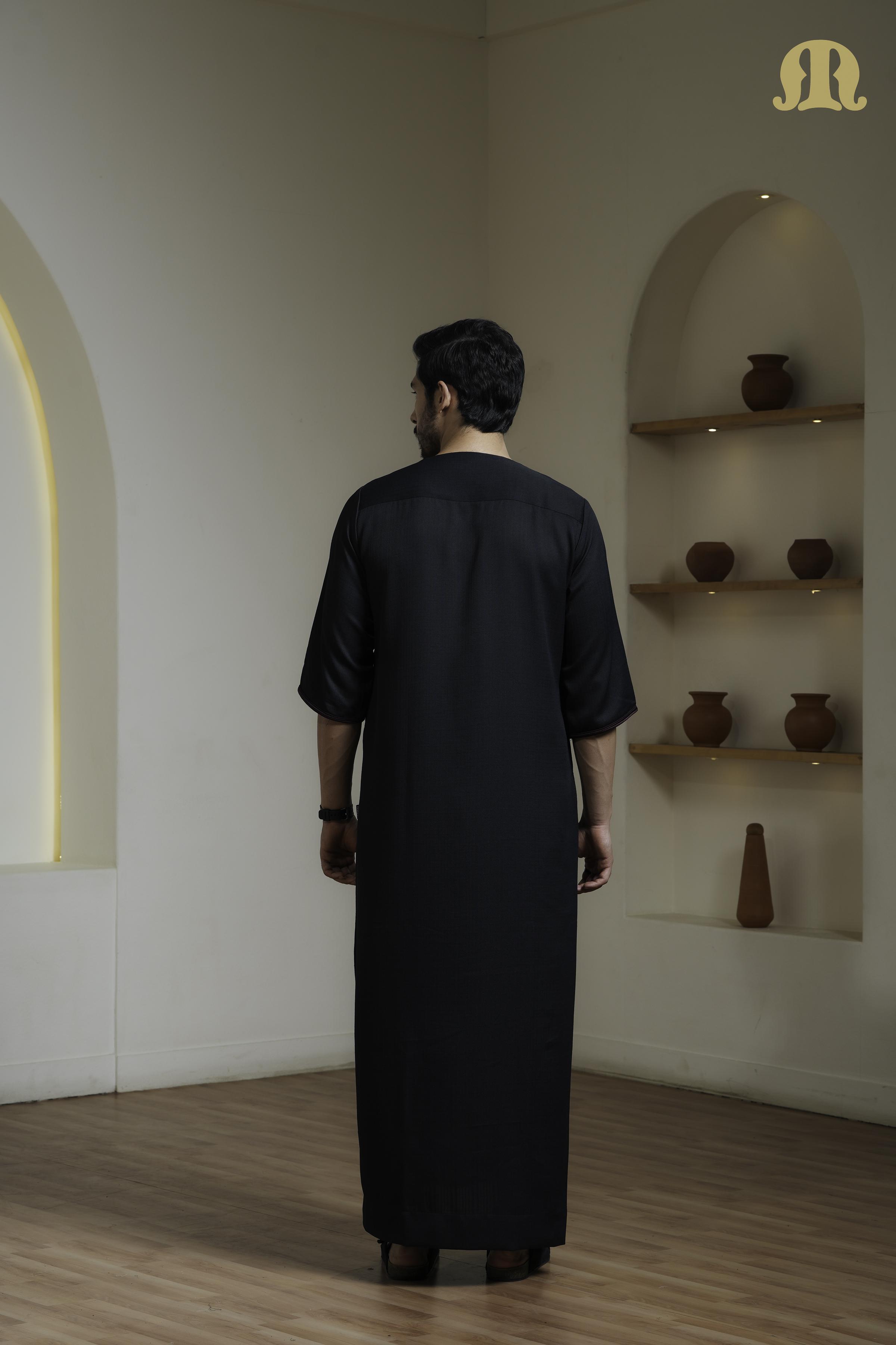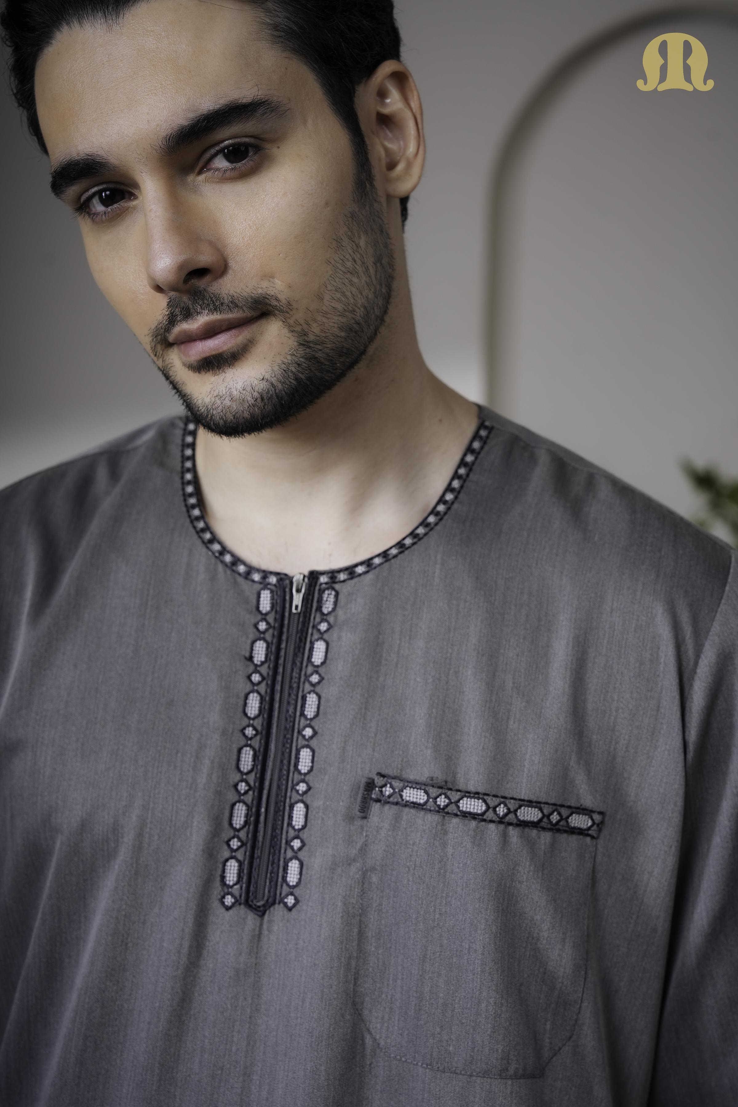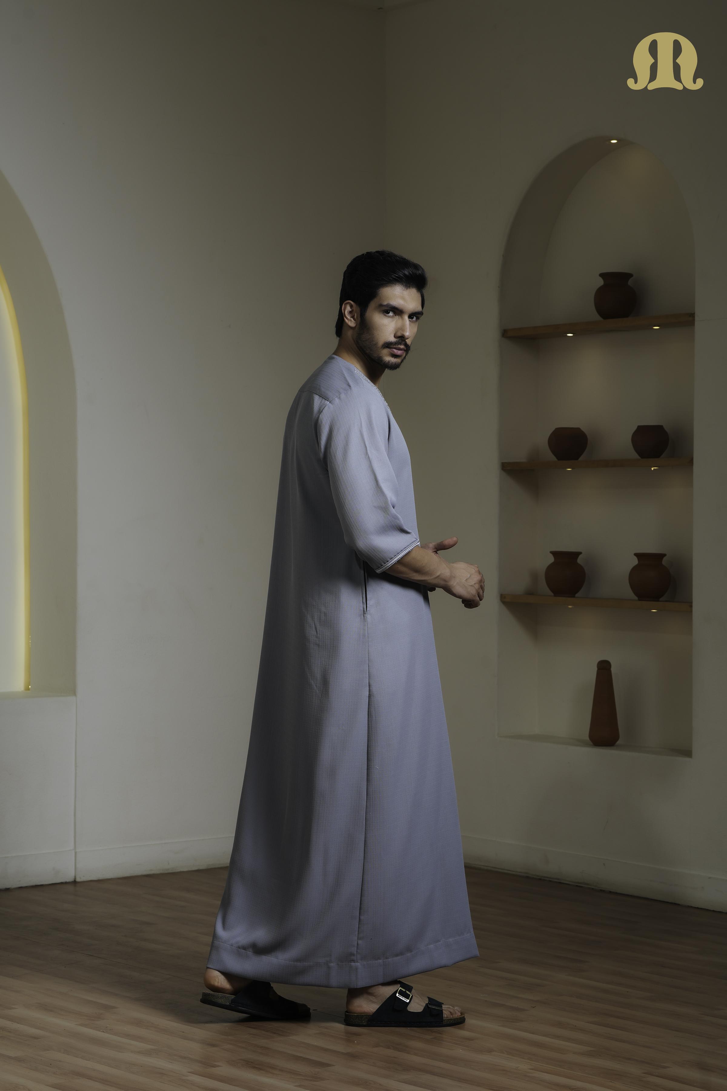 Designed for comfort with refined detailing, this Beige Andak Half Sleeve Thobe offers a perfect balance of practicality and traditional elegance. Its clean, streamlined silhouette ensures ease of movement, making it ideal for everyday wear in all climates. Crafted from premium Poly Viscose fabric, the thobe combines the breathability of cotton with the durability and wrinkle resistance of polyester. The result is a lightweight, easy-to-maintain garment that stays comfortable and presentable throughout the day. The design is elevated by an embroidered, adding a touch of sophistication, while embroidered sleeves enhance the overall look with subtle craftsmanship. The half sleeves provide a relaxed, contemporary feel without compromising modesty or style.